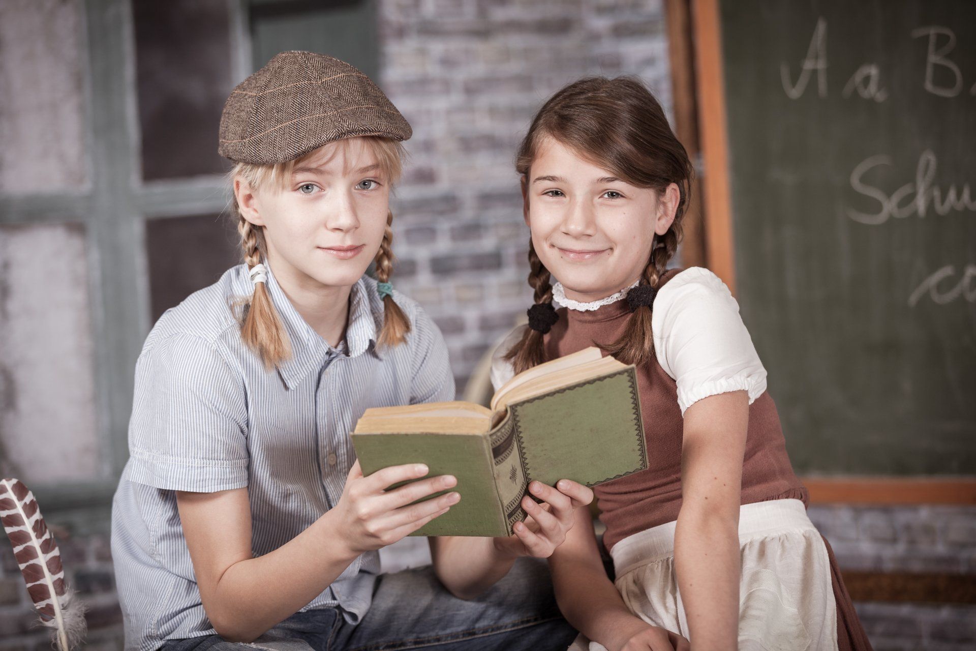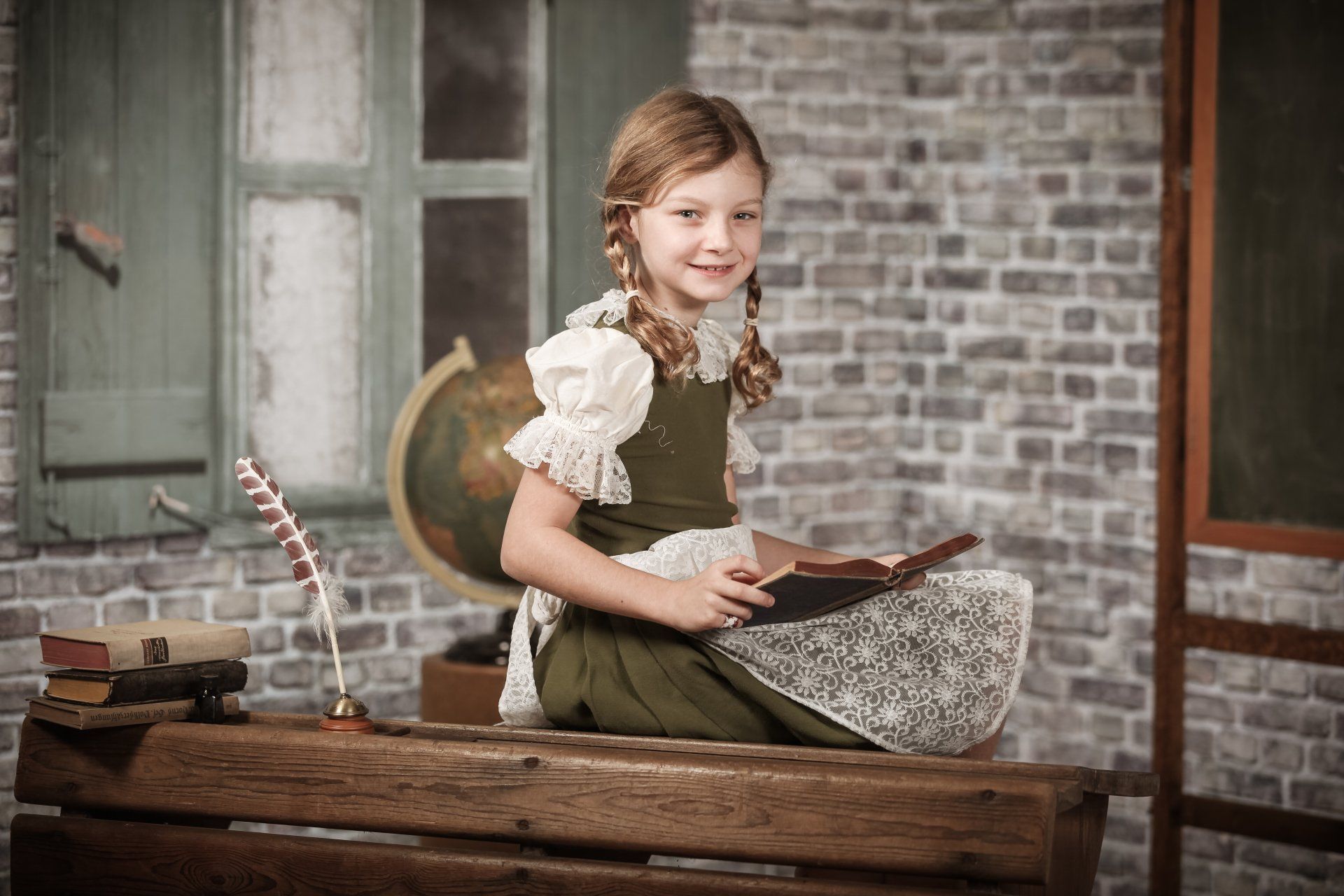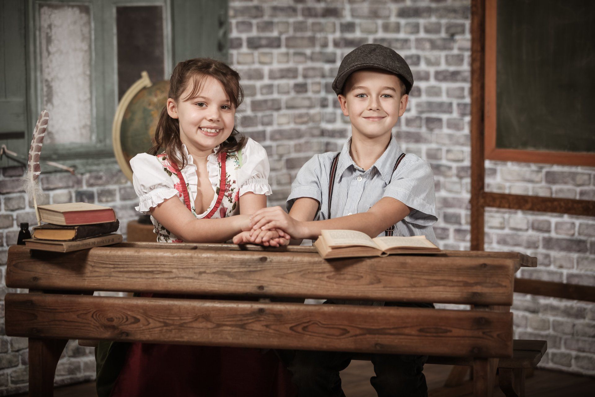 Die Old-School-Photography bietet eine völlig neue Foto-Idee für die Fotografie in Schulen an. In einem "auf alt gemachten Set", mit liebevollen Details, werden die Kinder in Szene gesetzt. Kleine Bekleidungsutensilien wie Mützen, Hosenträger und Kleider unterstützen den Charakter von früher.